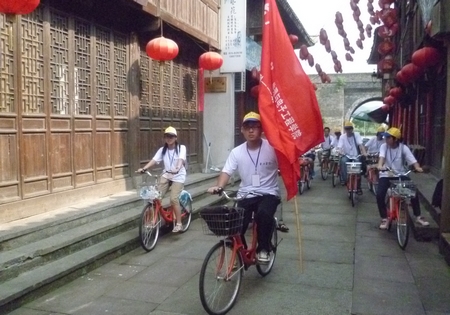在重温入团誓词、高唱红歌之后,实践队20名同学以骑车行进的方式开始“红色足迹”寻访之旅,相继寻访了中共临海县特别支部成立地、浙南交通处旧址、抗日妇女训练班旧址、临海县委与台属特委联络站、台州救国协会旧址、救护盟军美国飞行员的恩泽医院旧址、郭凤韶故居等革命遗址。寻访过程,同学们还采访了辛亥革命烈士杨哲商等先辈的后人,感受了为革命事业抛头颅洒热血的革命先烈们的英雄情怀。