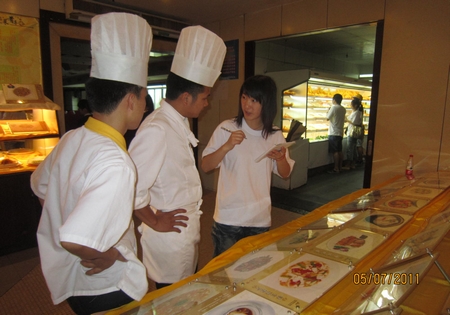 7月5日上午,外国语学院暑期社会实践“临海对外服务用语规范性调研”小分队一行8人在刘常民老师的带领下,走进远洲国际大酒店调查临海市酒店在接待外宾时的英语运用情况和酒店菜单的翻译现状。