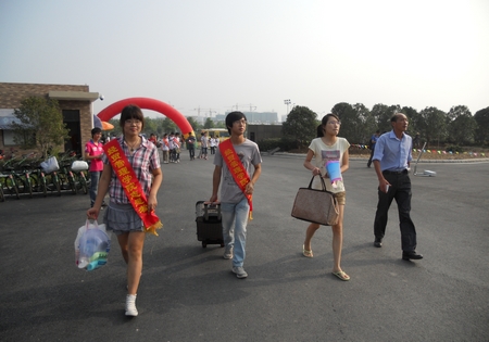 在校门口、新生接待点,大二同学顶着烈日接行李、送新生,有条不紊地引导新生完成报到的各个程序。在往返接新生的客车上,旅游管理的同学用专业知识热情地向新生介绍台州的地理、人文以及学院的总体概况,让新生对大学生活充满了期待。