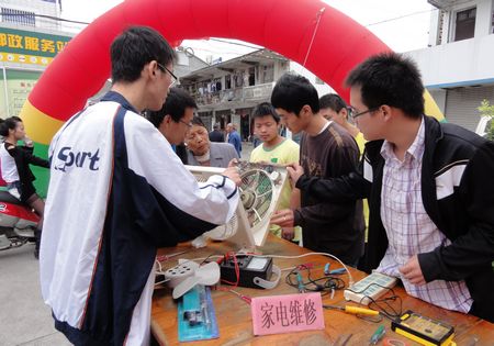 此次活动,我校共组织了以医学院、物电学院和校知联会为主的50多名师生,分别在街道敬老院和东山村开展医疗服务、家电维修、体成分测试、骨密度测试等便民服务活动。医疗服务涵盖了内科、儿科、眼科、推拿针灸和测量血压血型等项目,在为当地百姓、敬老院的老人们提供医疗服务的同时,还分别免费发放价值3000元的常用药品,受到当地群众的喜爱和称赞。