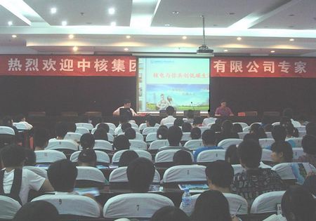9月29日下午,我校“核电与我”暑期社会实践队队员用海报展览和分发核电科普资料的方式,在临海校区进一步开展核电知识宣传活动,并邀请中核集团三门核电有限公司政治工作办公室主任钟英强作“核电与您共创低碳生活”专题讲座。