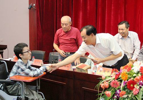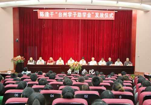 10月12日下午,“陈逢干台州学子助学金”发放仪式在我校椒江校区学术报告厅隆重举行。著名慈善家、天台籍企业家陈逢干先生亲自将30万元救助资金颁发给来自台州学院、台州职业技术学院、台州广播电视大学的100名家庭经济困难大学生。