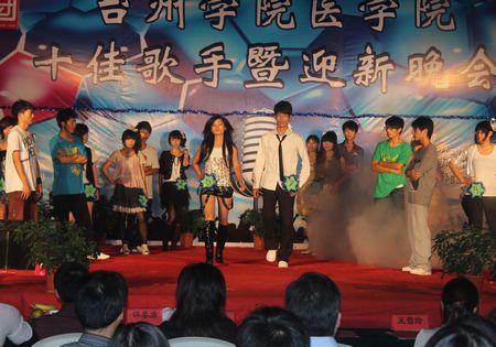 经过一番激烈角逐,金晓青、徐晓裙、郭毛倩崭露头角,分别获得医学院十佳歌手大赛冠、亚、季军,夏晨艳则以短信选票最多而获人气王。