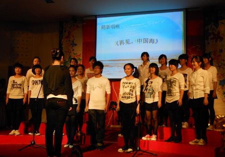 学院2011迎新晚会以“师心扬,梦飞翔”为主题。一首由大一、大二学生合唱的歌曲《再见,中国海》拉开此次晚会的帷幕,在“众里寻他千百度”、“夜深忽梦少年事”、“春来发几枝”和“天涯共此时”的四个篇章中,爵士舞《Goodbye Baby》、相声《普通话》、越剧联唱等许多精彩节目将全场气氛一次次推向高潮。健美操《心梦新翔》,表演者以婀娜的身姿和激情的活力展示了青春特有的力量,令人回味无穷,在场师生无不拍手称叹。最后,晚会在群舞《花季•雨季》完美谢幕。