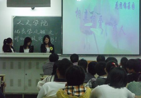 经过一学年来的积极创建,学院共10个班级脱颖而出参加此次优良学风班的评选。评选活动包括展示和答辩两个环节。在展示环节,参加评选班级通过制作精美、各具风采的PPT,向评委和观众充分展示了他们的班级魅力以及在学风建设中所取得的优良成绩。在答辩环节中,学生代表们用精彩的答辩给评委和观众留些了深刻的印象。经过评审,08中文3班等六个班级获得了师生评委的一致肯定,被评为人文学院2010学年优良学风班。