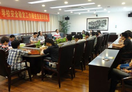 交流活动中,学院大一同学代表积极发言,气氛活跃。同学们就校内车速过快、校门口残疾三轮车、校门口流动饮食摊点、学生公寓阳台防护拦杆、楼道宿管员责任意识、校园施工场地以及周边环境等方面问题提出许多意见和建议。与会老师对同学们提出的问题一一作了解答,同时也再三强调安全问题责任重于泰山,希望同学共同努力,自觉维护校园稳定。