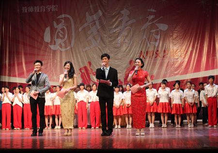 晚会荟萃了第三届“教育节”的精华成果。一首激情高昂的大合唱《相亲相爱》拉开了晚会序幕,也拉近了观众的心。活力四射的健美操、拉丁舞等节目淋漓尽致地展现了90后的青春魅力。立意新颖的手影舞《我和你》如梦如幻;群舞《青春纪念册》表现了毕业生对于校园生活深深眷恋;诙谐幽默的课本剧《阿里巴巴与四十大盗》让人重温童年的记忆,调动了全场的欢快气氛。形式新颖的越剧《花好月圆》以其美好的故事情节配以清婉歌声赢得台下阵阵掌声;魔术表演《Mr.Poker》让人体验到魔术的神奇魅力。哑剧《火车站的故事》凭借演员细腻到位的表演,塑造了风趣生动、对比强烈的两位社会人物形象,成为本次晚会的一大亮点。晚会上各类节目精彩纷呈,台下掌声此起彼伏。最后,在一首抒情独唱《不想说再见》中圆满落下了帷幕。