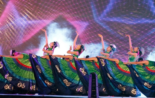 在本次开幕晚会上,我校艺术团共选送了6个节目。舞蹈《呼唤绿荫》呼吁人们爱护大自然,共创绿色家园;男声独唱《登天台》传递天台文化的精髓;舞蹈《醉梅园》赞颂梅花顽强的生命力;歌伴舞《牧羊曲》勾起人们对《少林寺》电影的美好回忆;女声小组唱《簸箕上的麻雀》仿佛把观众带到了风光旖旎的湘西苗寨,共度与麻雀同乐、喜庆丰收的美好时光;女声表演唱《幸福山歌》描绘了山区人民的幸福生活。