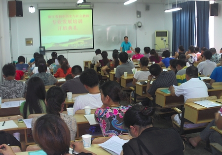 7月10日下午,浙江省初中历史与社会教师专业发展培训开班典礼在我校临海校区举行。校思政部党总支书记杜才平致辞,来自台州各县市区及杭州、温州、湖州和舟山等地的88名学员参加开班典礼。