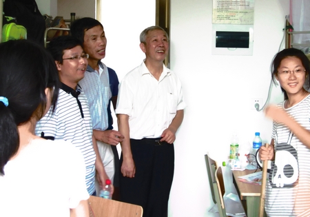 新生报到当日,机械工程学院院长聂秋根、党总支书记金能、党总支副书记郑建华在辅导员老师等陪同下,走访了新生寝室,看望2012级新生,与同学们亲切交流,了解他们的住宿情况,特别强调了文明寝室建设的重要性,对新生寝室的文明建设提出要求。