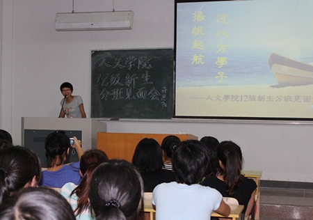 9月9日晚,人文学院2012级新生开学典礼在校学术报告厅隆重举行。全体新生及部分家长参加了典礼,共同聆听“开学第一课”。郑友霄院长简要介绍了学院的办学规模、专业设置、重点学科、教学团队等;陈灵强副院长就中文专业就业取向、中文魅力等方面作了详细介绍。老生代表王红波、新生代表陈承宇先后发言。