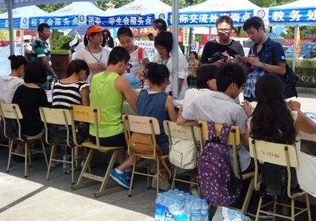迎新工作的成功离不开团学会和志愿者的辛勤工作。车站、报到现场、宿舍……都可以见到他们的身影,他们或接站、或维持秩序、或帮新生搬运行李……忙得不亦乐乎,脸上始终带着微笑。学院志愿者协会会长姜玲表示,我们所做的一切只希望能给新生带来家的温暖,保证新生快速办理入学手续,轻松入住寝室。