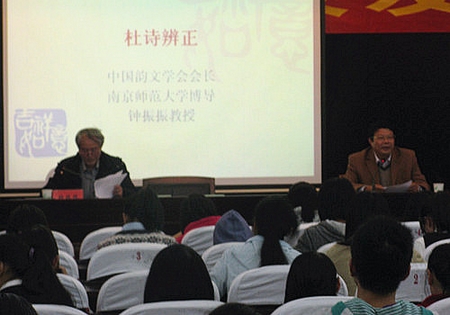 讲座伊始,钟振振教授便开门见山提出了自己的观点,他认为诗歌篇幅小,用语精炼,特别讲究其审美效果。“文学艺术不同于现实生活,它更侧重于审美。”