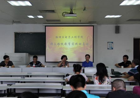 9月5日下午,物理与电子工程学院召开党的群众路线教育实践活动动员会。校教育实践活动联络员、学院党总支书记金松作动员讲话,院长陈卫平出席并讲话,副院长、党总支副书记蔡培阳主持会议,学院全体教职工参加。