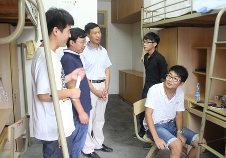 学院党总支书记金能、党总支副书记郑建华亲临迎新现场指导迎新工作,中午,还逐一走访新生寝室,了解新生的入住情况,听取新生对学院工作、寝室安排等方面意见建议,并关切地询问新生的家庭生活等情况。