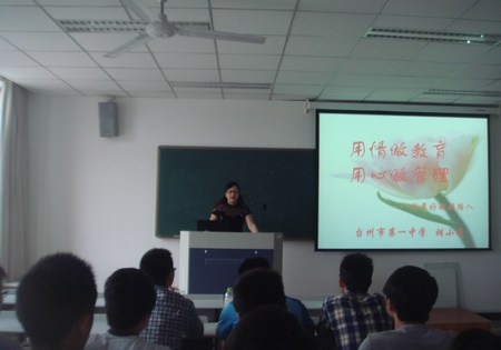 为使同学们对即将进行的教育实习工作做好充分准备,10月9日至11日,学院邀请省特级教师陈佂燕、全国优秀班主任胡小莉、椒江区星级教师张希国三位名师,分别为实习同学作“初中科学课题研究和科技活动”、“三位协调构建和谐集体”、“如何成为一名优秀的科学教师”专题辅导报告。同学们深受启发并与报告老师进行了热烈的交流讨。