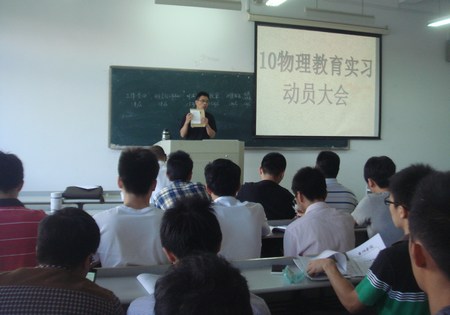 10月8日上午,学院专门组织召开2010级物理师范专业学生教育实习动员会,副院长蔡培阳具体介绍了实习的日程安排,明确了实习任务和实习纪律,希望同学们以谦逊、勤奋、守己、求索的态度,做好教学实习和班主任实习工作;通过实习打好教育功底,加强教师技能训练。