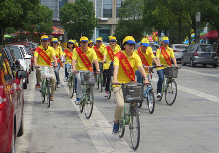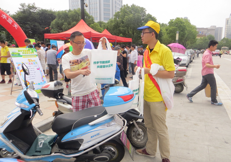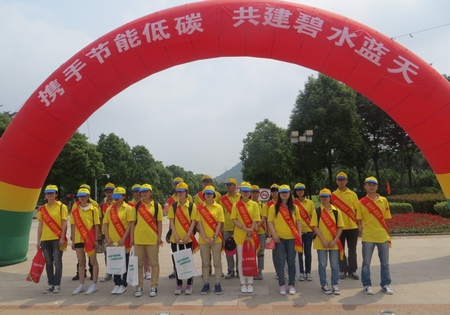 志愿者在校学工部、后勤服务管理处、团委等指导下,骑着环保自行车来到椒江市民广场,矗立起“携手节能低碳 共建碧水蓝天”环保主题大型绿色宣传栏,并摆放表达环保主张的“采用节能方式洗衣”、“节能装修”、“合理使用空调”等宣传海报和展板,营造浓郁的宣传氛围。志愿者们向过往市民发放节能布袋,还专门设立环保知识竞答等寓教于乐的游戏活动,与广大市民们分享低碳生活知识,体验绿色环保乐趣,使主题宣传活动更具趣味性,也更加吸引人。