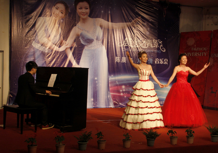 6月10日晚,艺术学院2010级音乐学专业学生陈晨、刘宇倩在临海校区学生活动中心联袂奉献“晨光倩影”个人音乐会。