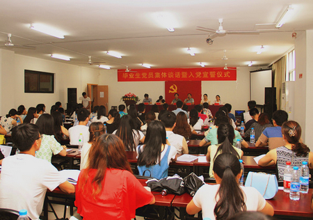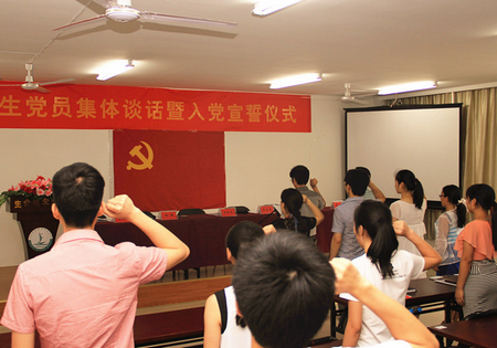 6月12日下午,生命科学学院举行毕业生党员集体谈话入党宣誓仪式。学院党总支书记王金宝带领全体毕业生党员,面对神圣的党旗庄重宣誓,用铿锵有力的声音表达对党的忠诚。