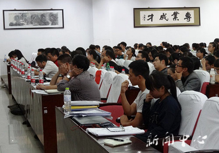 10月9日下午,以“明德正风 笃志厚学”为主题的人文学院2013学年优良学风班评选活动在临海校区校学术报告厅举行。学院党总支书记郑友霄、党总支副书记吴世永、副院长陈灵强出席;学院全体辅导员及各班班主任参加评选。