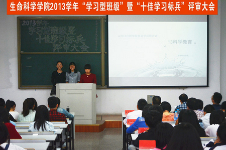 为营造良好的学习氛围,发挥榜样的示范引领作用,进一步推进班级学风建设,10月9日下午,生命科学学院举行2013学年“学习型班级”暨“十佳学习标兵”评审大会。学院领导王金宝、杨启富、孙长森及全体班主任、辅导员出席并担任评委。