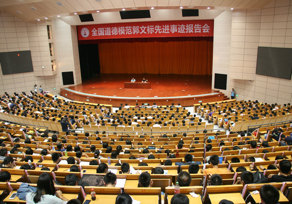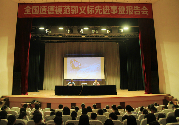 德育导师先进事迹报告会,已成为我校新生始业教育的重要组成部分。冯尚申副书记、李大兴部长在会上高度评价了郭文标不计名利、不畏艰险、不怕牺牲、无私奉献的崇高精神,号召广大同学以英雄为榜样,践行“澡身浴德 修业及时”的校训精神,树立明确目标,努力专业成才、精神成人,做一名优秀的大学生。