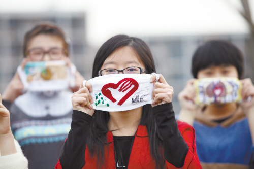 昨天,台州学院椒江校区内,同学们展示自己设计制作的“环保创意口罩”。当天,该校青年志愿者协会组织同学们拿起彩色画笔,在口罩上进行以环保为主题的设计创作,以此呼吁更多的人关注到环境保护中来。