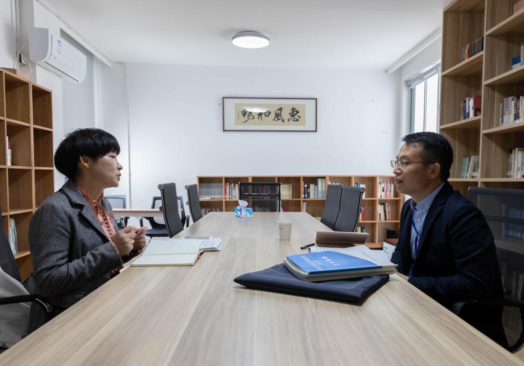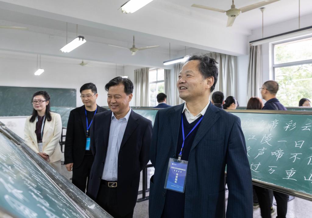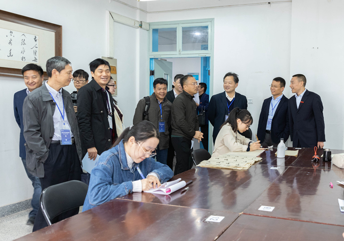 见面会后,专家组一行集体来到教师教育实验教学中心,考查了汉语言文学(师范)专业教学基础设施建设情况。集中考查结束后,专家组成员分别深入课堂听课,分头进行深度访谈,走访考察和合文化研究院、微格教室等。