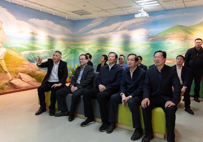 陈作荣、余梅生一行走进台州市大陈岛垦荒精神研究中心,一边认真听取介绍,一边不时驻足观看和提问,沿着垦荒足迹,叩问初心使命,重温习近平总书记一次登岛两次回信的重要指示精神。