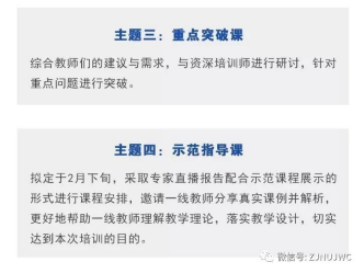 本校教师可以通过超星“学习通”APP登录(首次登录账号为工号,初始密码为123456)进入培训平台,培训自2月1日起,为广大教师提供线上课程或专家直播课程,所有课程均为公益性优质网络学习资源。课程分为技术先导课、综合提升课、重点突破课、示范指导课四大主题,采取“线上课程+专家直播”的模式开展。每个主题模块课程结束前,将在“超星教师发展中心(chaoxingjiaofa)”公众号发布下一主题课表,请各位教师及时关注课表信息。