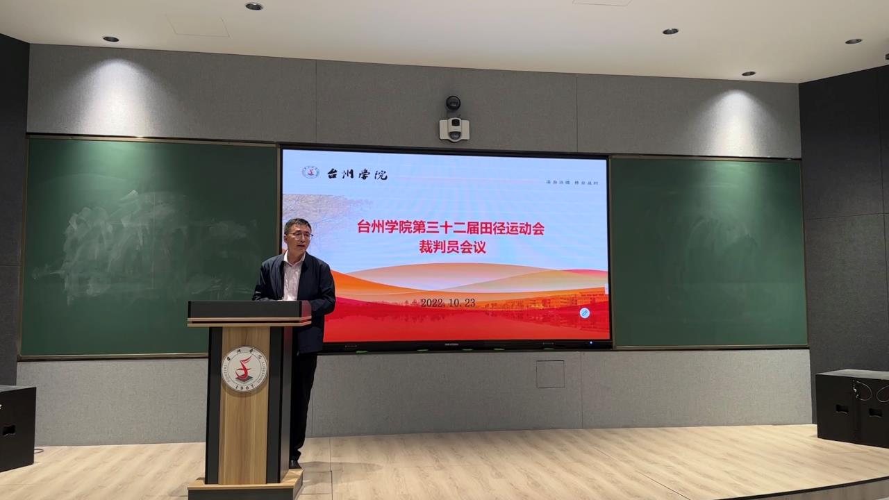 10月23日上午,台州学院第三十二届田径运动会裁判员会议在台州学院(临海校区)A6阶梯教室顺利召开。教师教育学院党委书记赵校民、教师教育学院副院长、总裁判长林辉杰参加。会议由校体委戴晓捷老师主持。
