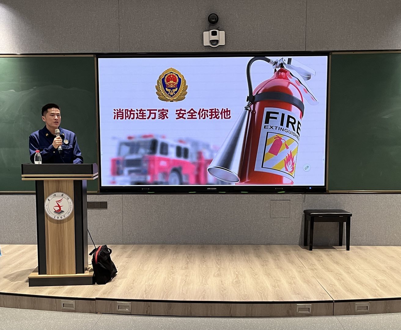 培训会上,消防宣讲员介绍当前的消防安全形势,通过视频实例介绍了火灾起因,火场逃生自救的原则、方法、器材使用、线路选择等知识。一个个鲜活的案例视频让同学们深深认识到“大意是火灾之源,谨慎为安全之本”,防火除患唯有从日常点滴做起,时刻绷紧安全之弦。