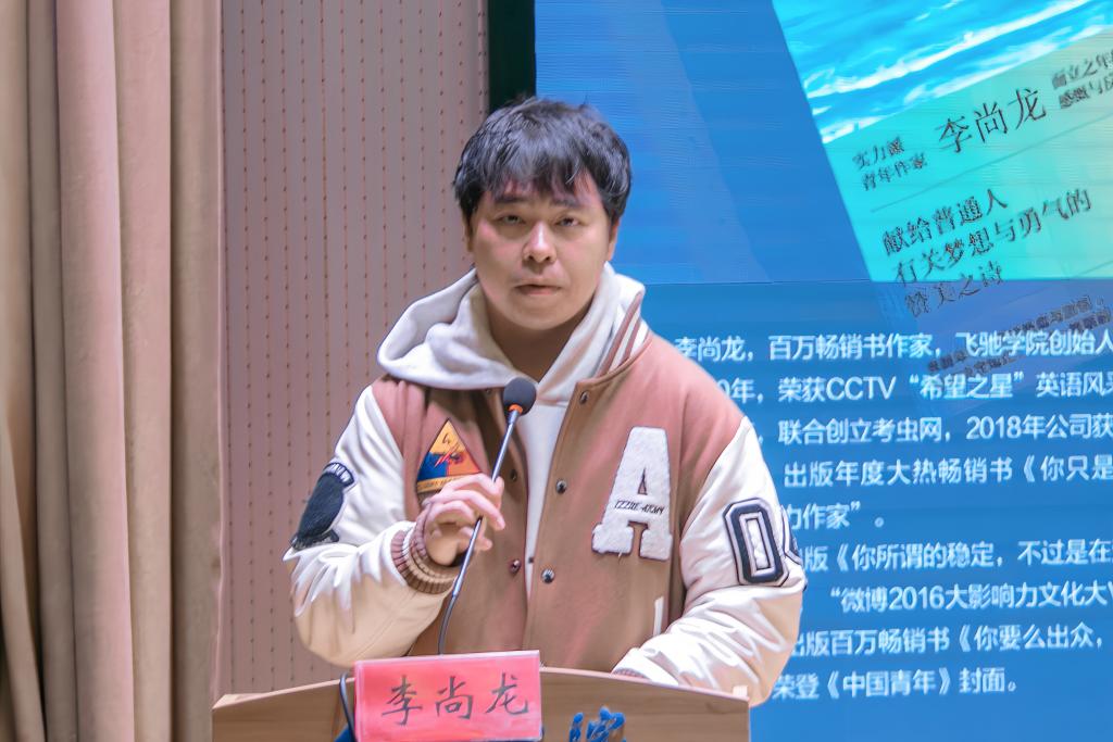 3月24日下午,“德业·名家大讲堂”系列讲座第二讲在椒江校区大学生活动中心开讲。百万畅销书作家、橙啦app首席内容官李尚龙应邀做客本次活动,作《若你决定灿烂 尽管一路朝前》专题讲座,椒江校区各二级学院师生和市民代表近两百人到场聆听。