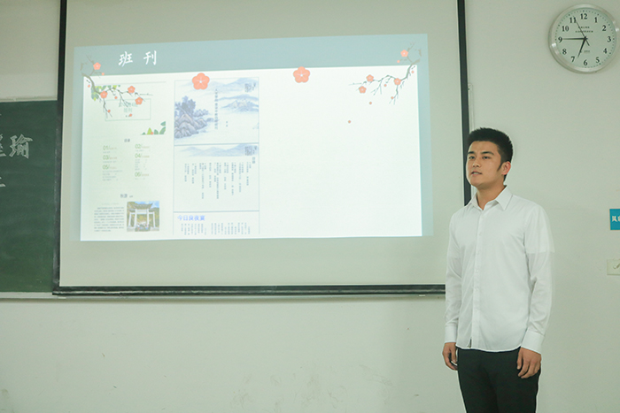 会上,21个班级负责人从学风建设、班级风采和寝室生活等方面所开展的工作和取得的成效采用ppt形式进行班级学风建设汇报。以“家”为班级建设核心理念的17中文1班根据人才培养方案制定了自我发展、稳中求进的目标;17中教1班不拘一格,采用微电影的创新形式展开讲解;16中教4班则首创“读书笔记大赛”,通过多期的读书、赠书活动在潜移默化中提升同学们的人文素养;17历史共获得40余个荣誉称号,248项奖项;18中教2班的英语打卡和18思政1的班级常规数据统计都做的非常详细。