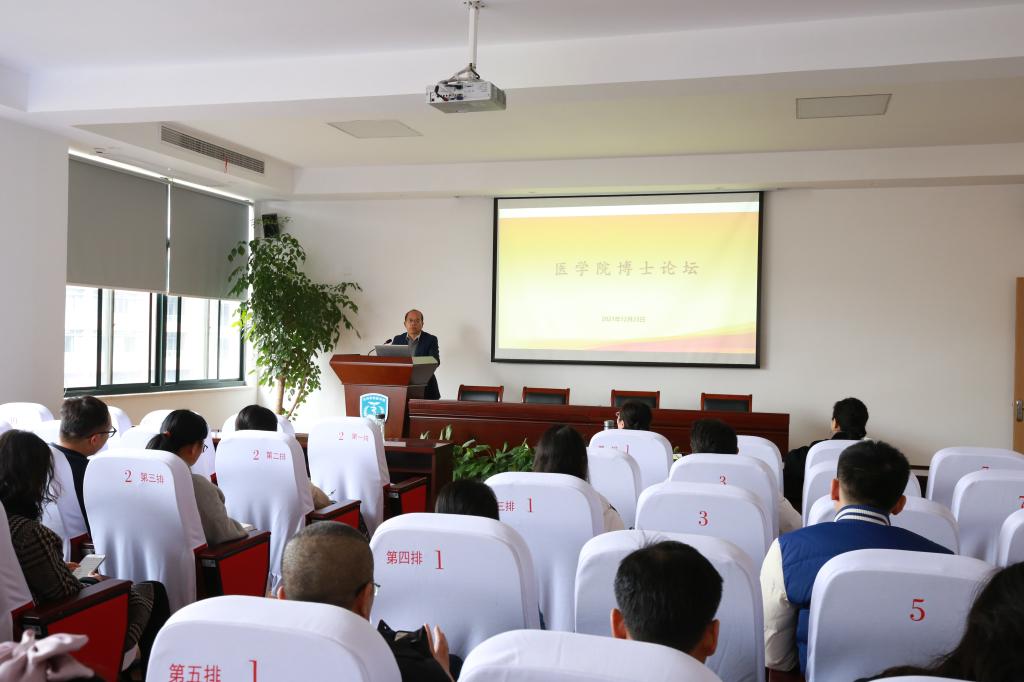12月23日下午,医学院2021年(首届)博士论坛在学院437会议室举行,学院党委书记李仲斐、副书记周敏出席,论坛由胡琼莹副院长主持,学院2018年入校的博士教师进行了交流汇报。