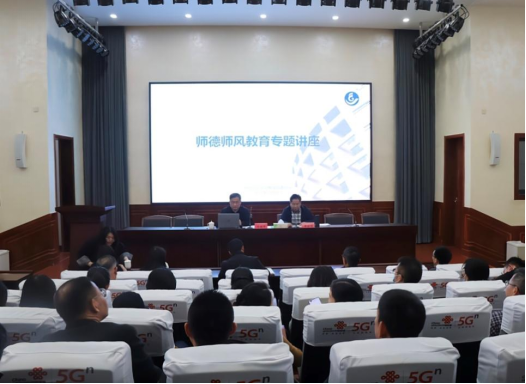 江岳军分析归纳了当今高校在师德师风方面存在的诸如学术不端、师德失范、不当言论、不当获利等几种类型的突出问题,通过具体典型案例澄清了对师德师风问题认定的一些误区。他同时带领与会教师学习了《新时代高校教师职业行为十项准则》和《高校教师师德禁行行为“红七条”》,要求大家做到坚定政治方向、自觉爱国守法、传播优秀文化、潜心教书育人、关心爱护学生、坚持言行雅正、遵守学术规范、秉持公平诚信、坚守廉洁自律、积极奉献社会,从正反两方面提醒教师要坚定理想信念、厚植爱国情怀、涵养高尚师德,真正做到学高为师、身正为范,践行为党育人、为国育才的初心使命。