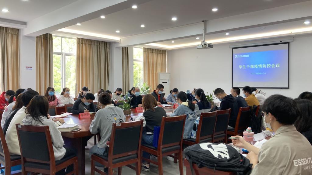 为进一步做好新型冠状病毒肺炎疫情防控工作,打赢疫情防控狙击战,外国语学院迅速行动,在4月19日中午召开学生干部疫情防控会议,力求做好各项应对工作。学院党委书记李涛,党委副书记鲁建波出席;学院党委委员、学工办主任房佳婕主持会议,全体辅导员、各班班长以及团学干部参加。