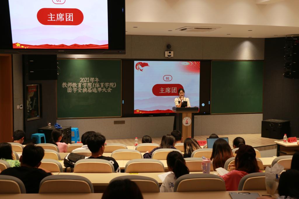 6月7日晚,教师教育学院(体育学院)在临海校区A6教室举办第五届团学会换届选举大会,学院党委委员郑殷珏,学工办主任阮溶明,辅导员徐薇、赵远远、朱萌,各候选人、主席团成员以及各班代表参加本次会议。