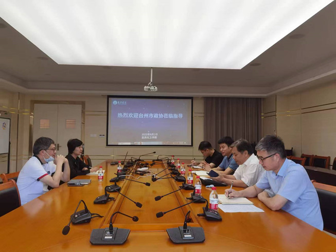 9月1日上午,台州市政协副主席曹羽,市政协常委、提案委副主任潘雄麟,市政协提案委副主任姜渭一行来医药化工学院调研,院长吴劼、书记徐元红参加。