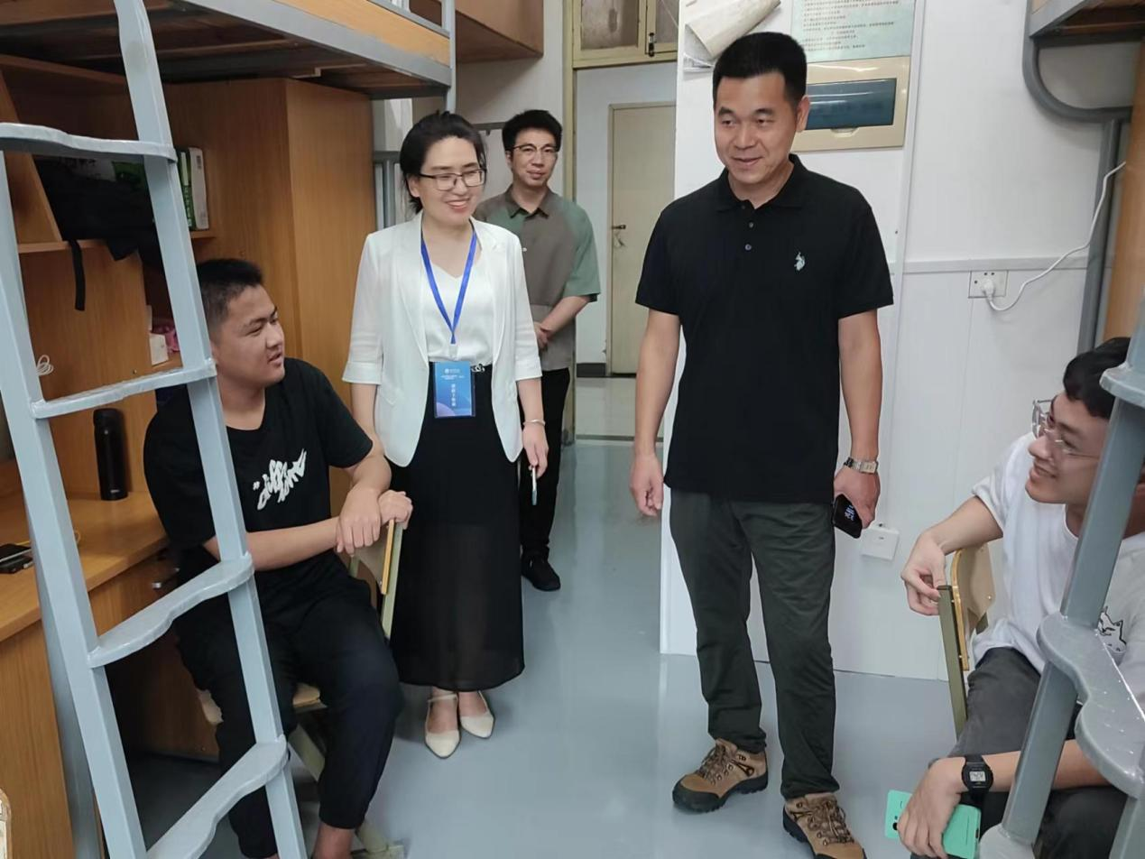 9月3日下午,电信学院执行院长苏岐芳、党委书记王奎东带领班子成员、专业系主任、2022级班主任及部分辅导员,走进新生寝室,深入了解新同学们的“大学初体验”,为新同学们送上学院的关心和问候。
