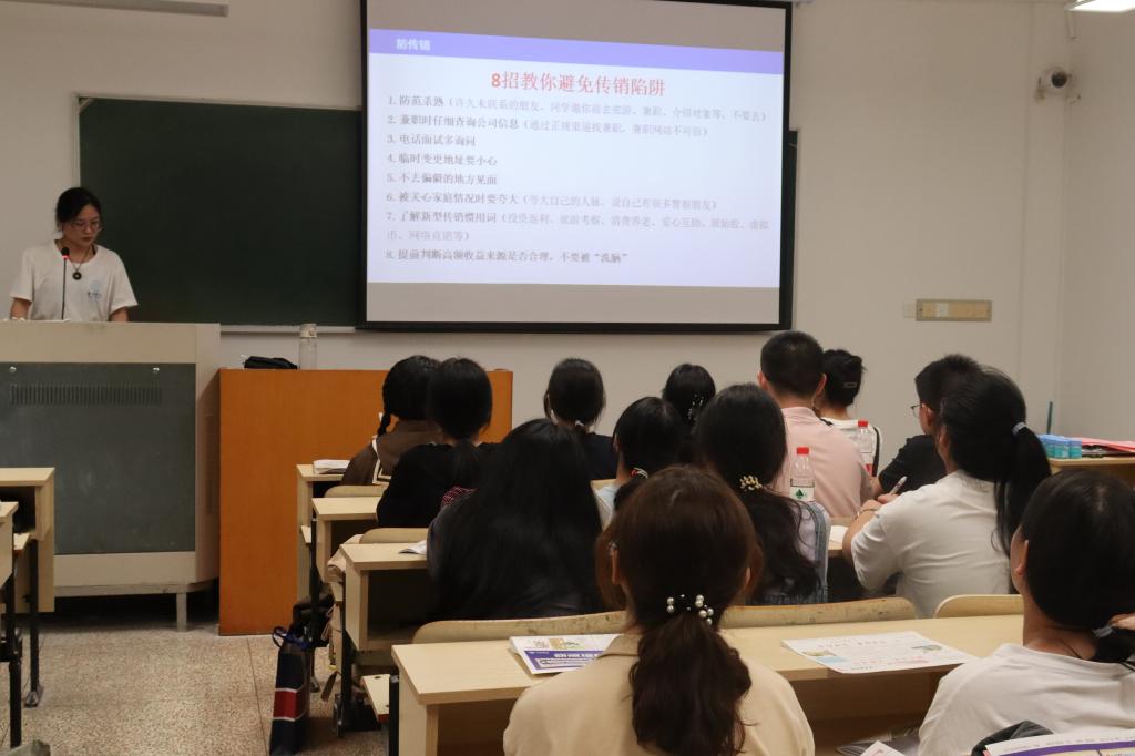 各班班助从防范诈骗、盗窃、传销陷阱、网络侵害、交通事故等方面进行安全教育,并告知了一些安全应急措施。学院团学会干部进行了团学部门宣讲,向同学们讲解各部门的职能和日常工作,呼吁同学们积极参与校园活动。班主任和班助聚焦学业和生活,希望同学们合理规划大学生活,加强自身修养,提高综合素质,鼓励同学们抓住机会、磨练自己,不断进步、不断成长。