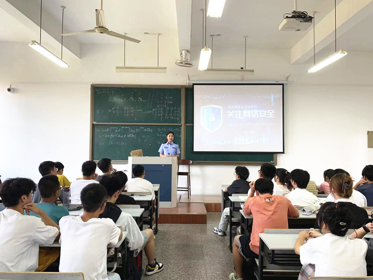 为加强网络安全教育,帮助学生树立安全防范意识,9月8日,医药化工学院开展网络安全主题班会。班会现场特邀葭沚街道派出所民警出席并宣讲反诈指南。学院党委副书记刘贵花、全体辅导员、2022级新生参加班会。