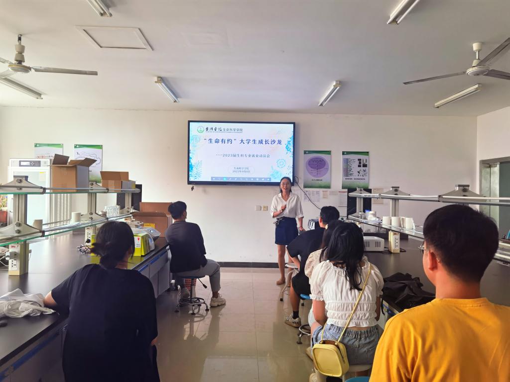 9月8-9日,生命科学学院分别在2305和D447召开“生命有约”大学生成长沙龙,面向2023届生物科学和生物科学(三台)班开展就业动员会。辅导员张晓主持,2023届生物科学专业全体毕业生参加。