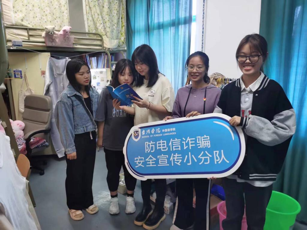 为进一步提高外国语学院学生防诈骗能力,增强防诈骗意识,10月中下旬,外国语学院组织了50多位学生党员深入数百个学生寝室,特别是2022级新生寝室,开展防诈骗宣传教育活动。