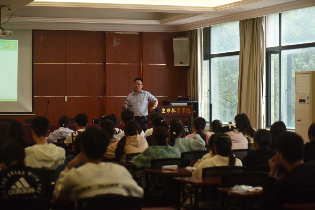 2022级生物科学专业的《生命科学前沿》于10月17日在生命科学学院大楼二楼会议室开讲,第一讲的授课专家为生命科学学院院长杨万勤教授。生物科学专业负责人蒋明教授主持讲座。