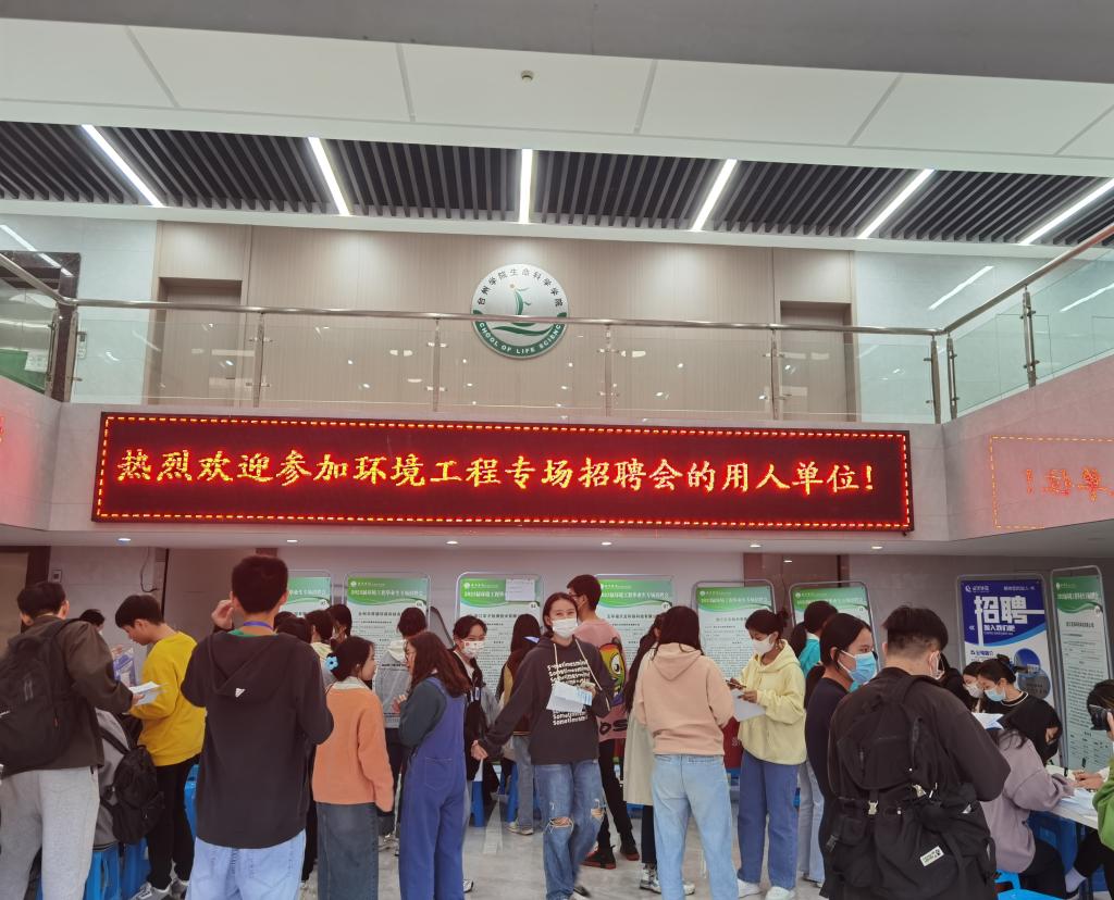 10月27日下午,生命科学学院在学院一楼大厅举办2023届环境工程毕业生专场招聘会,十余家招聘单位应邀参会,提供百余个就业岗位。