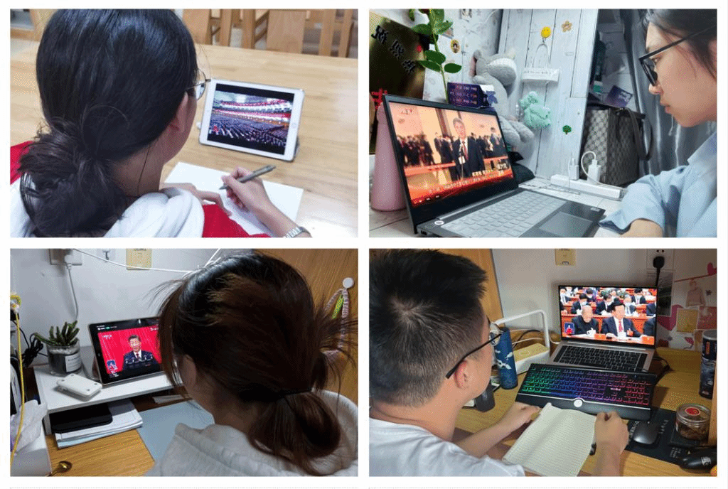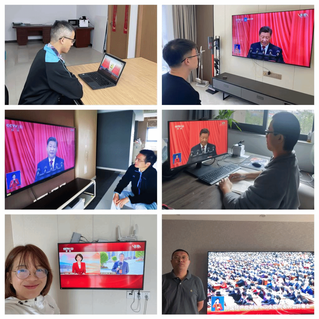 习近平总书记作了题为“高举中国特色社会主义旗帜,全面贯彻新时代中国特色社会主义思想,弘扬伟大建党精神,自信自强、守正创新,踔厉风发、勇毅前行,为全面建设社会主义现代化国家、全面推进中华民族伟大复兴而团结奋斗”的报告。从办公室到图书馆、宿舍楼,师生们都以高度的政治觉悟,严肃认真的态度,一边收听报告,一边认真记录。