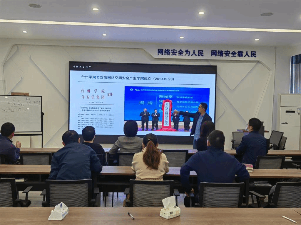 10月30日上午,宁波工程学院网络空间安全学院院长鲍淑娣、温州职业技术学院人工智能学院副院长吴淑英、绍兴文理学院计算机系副主任屠昂燕等省计算机教育与应用学会教育委员会成员在电信学院副院长、网络空间安全产业学院副院长张石清,电信学院计算机系主任、网络空间安全产业学院副院长陈盈,奇安信集团浙江区总经理、网络空间安全产业学院副院长林尚晓等陪同下,参观了我校网络空间安全产业学院。