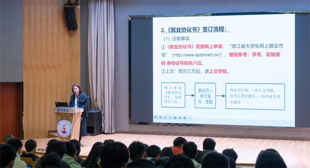 辅导员洪莹从实操层面具体介绍了就业有关政策及注意事项,希望同学们早日找到自己心仪的工作。